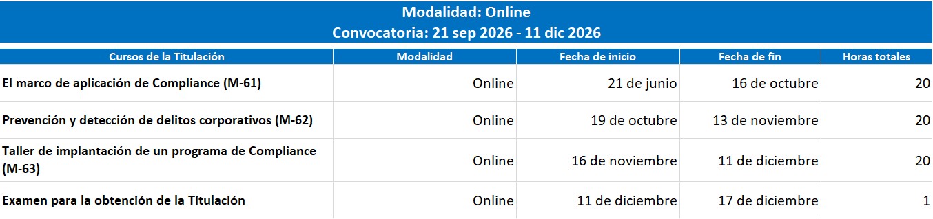 - Prevención y detección de delitos corporativos (M-62)