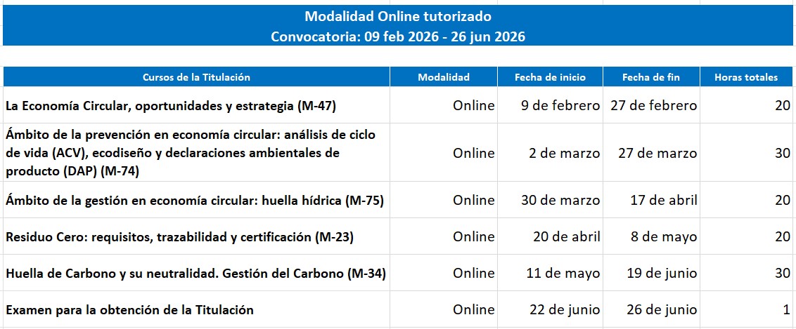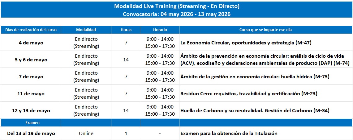 Este programa puede realizarse de manera completa o bien cursar sólo alguno de los cursos que lo componen. Para obtener la Titulación Propia de AENOR como Especialista en gestión de la Economía Circular en las organizaciones es necesario haber superado cada uno de los cursos que componen este programa, así como la prueba de evaluación final.
