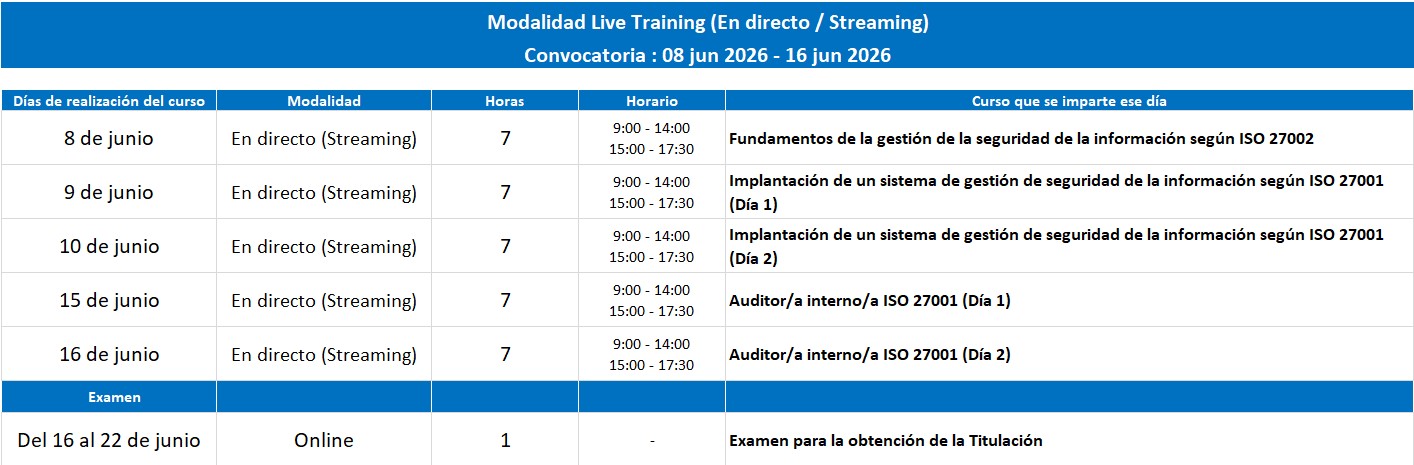 - Live Training (en directo/streaming): Formación en tiempo real con profesores expertos.