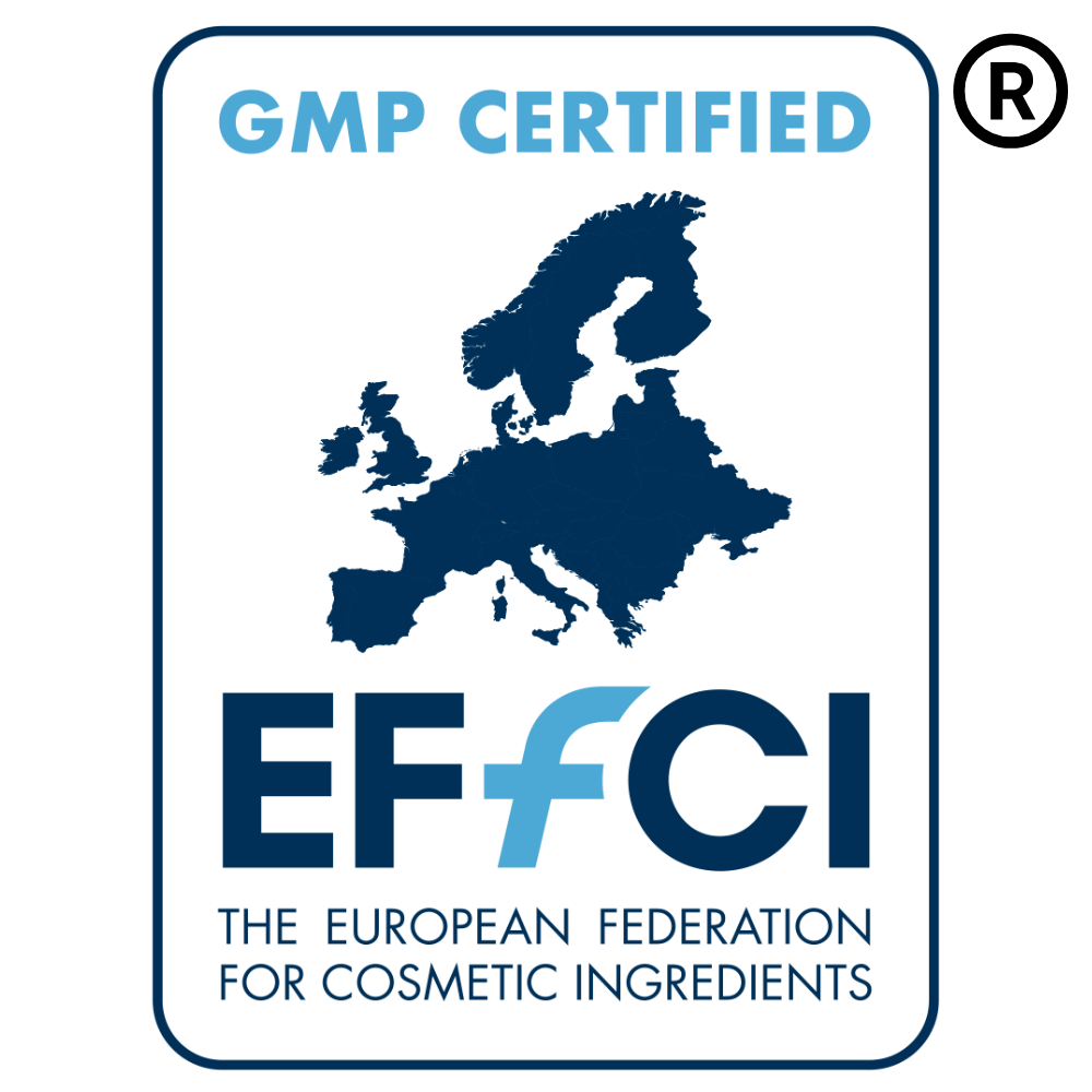El Certificado de cumplimiento con la norma EFfCI de buenas prácticas de fabricación de ingredientes cosméticos.