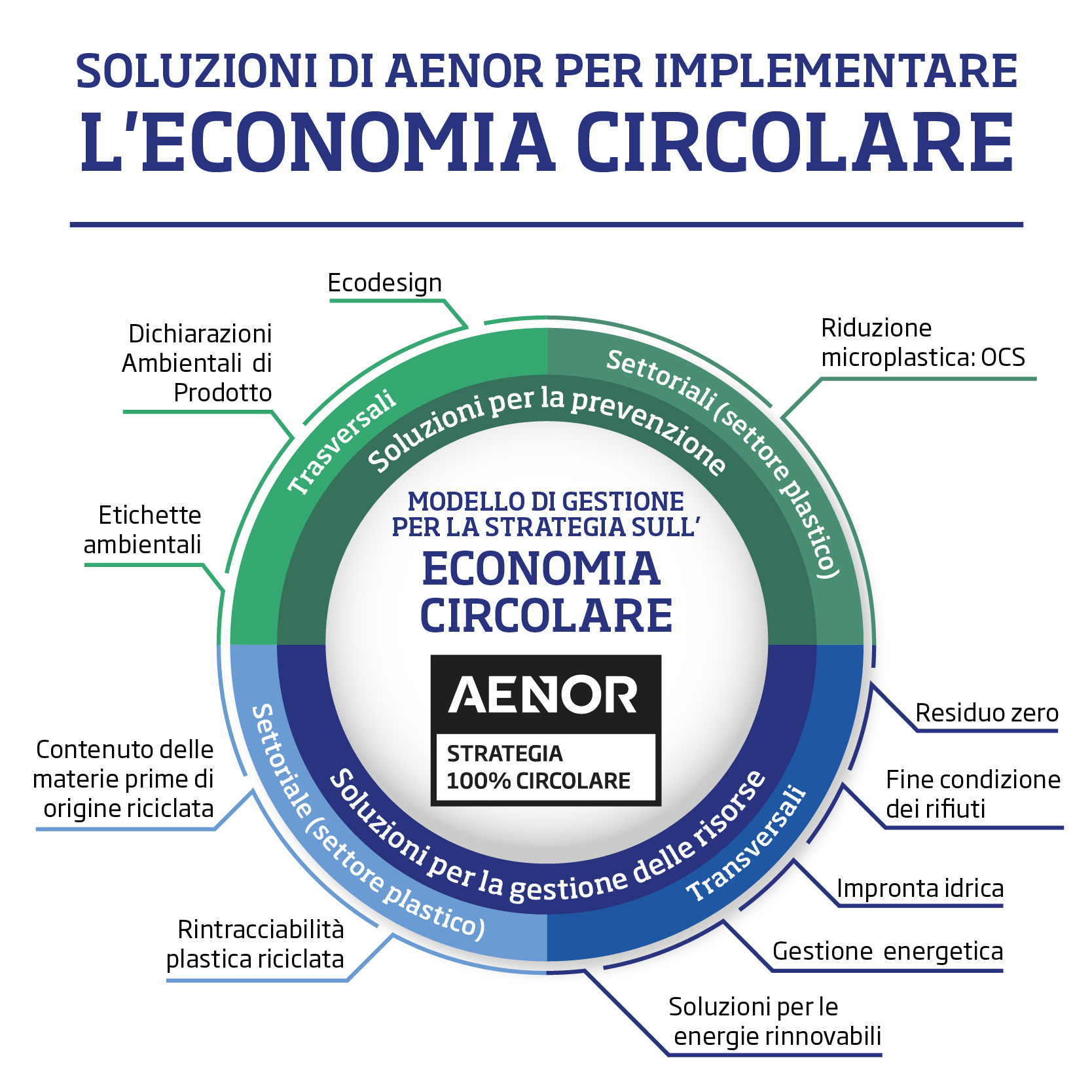 Date le sfide poste alle aziende per decidere quali aree dell'economia circolare sono le priorità per ciascuna, in AENOR abbiamo sviluppato il Modello di Gestione della strategia di economia circolare che fornisce alle organizzazioni una certificazione di riferimento per determinare la rilevanza degli aspetti sull'economia circolare da affrontare, permettendoci così di intraprendere il percorso e determinare a quali principi internazionali dell'economia circolare contribuisce.