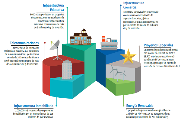 Hemos supervisado las obras de más 1.000.000 m2 en 100 proyectos inmobiliarios multifamiliares que representan más de 125 millones de USD $ de inversión realizando las siguientes actividades: Revisión y validación de la documentación técnicolegal del proyecto: